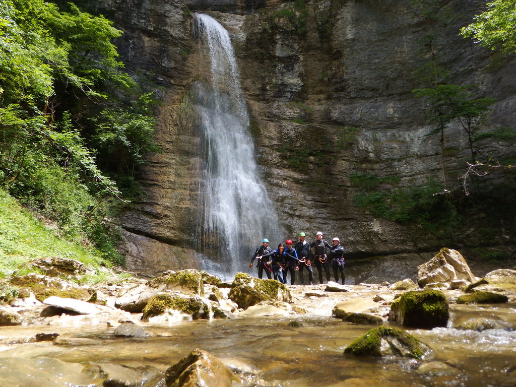Après une petite nuit on attaque la descente du canyon par quelques ressauts et rapidement nous voilà dans le rappel de 55m en fil d'arraignée.