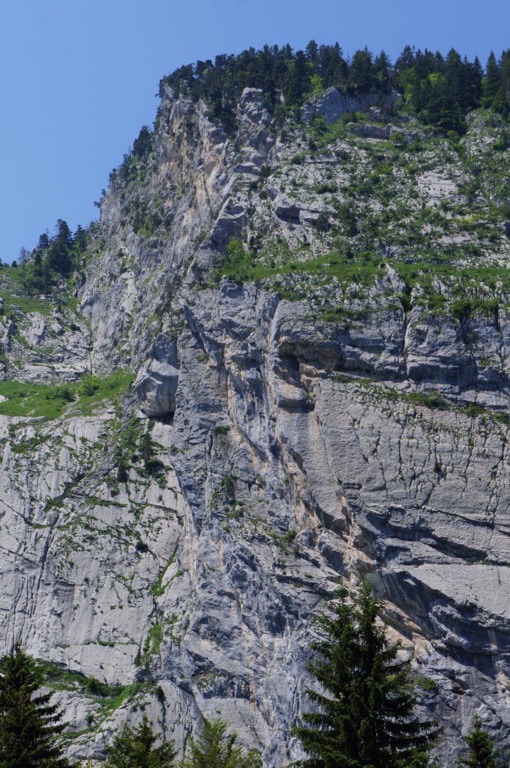 Le lendemain les troupes sont bien limées. Sam nous rejoint à Thônes d'où on repart au Sappey. Depuis le Sappey, petite randonnée d'une heure direction la Rosière. Très très belle ballade… Une fois sur place, je me "dévoue" pour grimper avec Sam dans l'écume des jours (voie mythique de surcroît). La seconde équipe part pour de la couenne mais fini en farniente dans l'herbe pour cause de surcharge de grimpeurs au-dessus des couennes et de très forte chaleur! On se rejoint aux voitures vers 18:00 et voilà déjà le week-end fini.