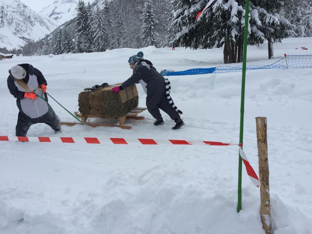 Samedi, nous nous sommes réveillés dans un lieu enchanteur, toujours dans une ambiance bon enfant, prêts à affronter les épreuves telles que l'incontournabre tour de glace, la luge à foin, la tyrolienne, la course de skis, les raquettes tendem, la gastounette, la cordée, le surf, le curling et la course d'orientation.