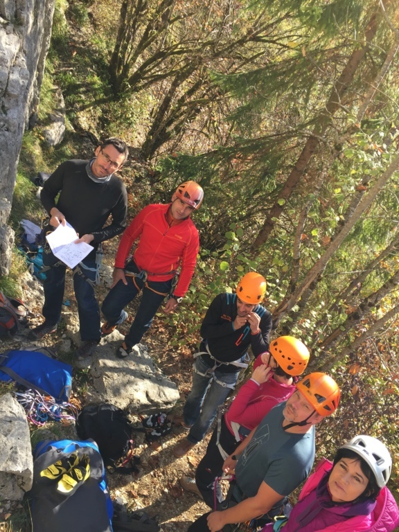 Ce dimanche 21 octobre, quelques nouvelles recrues et quelques anciens ont pu faire plus ample connaissance. Nous sommes aller à Belleydoux : 7 degrés en arrivant au parking. Heureusement le site était baigné de soleil et nous avons eu vite chaud (un peu trop pour certains :)) Après l'installation de moulinettes, les nouveaux licenciés ont démontré leur motivation en enchainant les voies dans la bonne humeur. Certains ont découvert de nouvelles sensations sur le rocher. Marc leur a fait tester la descente en rappel pour finir.
